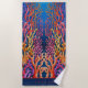 Enjoy the summer by the sea with our Colourful Neon Orange Ocean Coral Personalised Beach Towel featuring hand-drawn illustrations of vibrant and colourful ocean coral in captivating neon shades of red, orange, yellow, violet in deep blue waters in this captivating design! Text can be updated with custom details such as name or motto to create a personal accessory or unique gift!