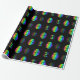 Colourful Neon Rainbow Easter Egg Pattern Black Wrapping Paper