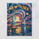 Colourful New York Skyline Retro Liberty Van Gogh Postcard
