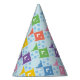 Underwater pattern party hat with elements of a group of fish and air bubbles.