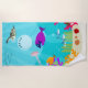 Colourful Ocean Sea Animals Kids Name Beach Towel