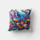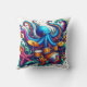 Colourful Octopus Playing Drums in Ocean Waves Cushion