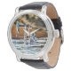 The colourful image, on this wristwatch, is of an oil well pumping "pumpjack" unit. This type of unit nods up and down, day and night, working to bring oil and natural gas from deep below to the surface of the earth.