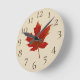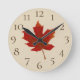 Colourful Orange Maple Leaf & Beige & Brown Round Clock