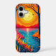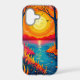 Carry the beauty of nature in your pocket with this stunning phone case. The vertical design perfectly captures a vibrant sunset landscape, complete with fiery orange skies, a glowing sun, and a serene lake reflection. This durable tech accessory offers both protection and a bold, modern outdoor aesthetic.