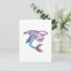 a decorative tattoo design of an orca whale or another fish in blue and purple colours on a postcard
