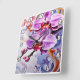 Two stunning purple orchids with intricate detailing bloom against a swirling, colourful backdrop of soft hues.