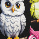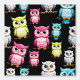 Colourful Owl Birds Black Background Pattern Wallpaper