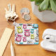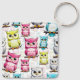 Cute colourful pink, yellow, blue and white kawaii owl birds surface pattern Design On a white background with fade reflection effect Style