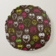 Colourful owl doodle background pattern round cushion