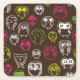 Colourful owl doodle background pattern square paper coaster