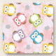 Cute illustration of different coloured owls standing at different angles on this cute whimsical owl pattern with a soft pink background, which has a vintage flair. Each owl has it's own unique pattern.
