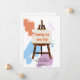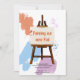 Colourful moving announcement card with an easel to hold your custom message, brushed paint samples and paint splatters. The design is lettered with distressed painted style typography and is fully editable. The sample wording reads "Painting our new Pad" which you can keep or edit as you wish as well as add a personalised message with your name(s) and new address.