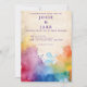 Make an unforgettable statement with this vibrant wedding invitation, where bright, artistic watercolor paint splashes in rainbow hues dance across the card. The clean, modern layout showcases bold streaks in purple, green, red, yellow, and blue, capturing the fun and joyful essence of your celebration.