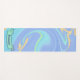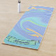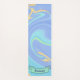 One front side of this yoga mat features a multicolor paint swirl of pale peach, blue, purple, and green with a placeholder for text. Fill in the template text field with a short message or name, leave as is or click customise to select a typeface style, size and colour you prefer.