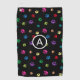 Fore! Enjoy golfing while showing your love for animals with this monogrammed golf towel featuring a cute and colourful animal paw print pattern. Shown here with a black background; you can change the text, circle border and background colour to your favourite!