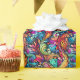 Rainbow of ornamental paisley pattern, colourful curved teardrop shapes.