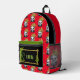 Checkout this adorable panda backpack that you can personalise with a name prior to placing into your shopping cart. A bold red background houses a repeating design of a cute panda sitting in front of bamboo stalks. The front pocket holds a frame of bamboo where you add your text.
