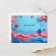 This customisable birthday postcard offers a paper-cut-style design featuring colourful swirls, waves, a big yellow star, and white clouds.