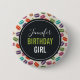 Personalised Birthday button which says "Birthday Girl" with a cute pattern of macarons in many different colours with a faint polka dot pattern behind.