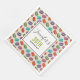 Paper napkins for a birthday party or other event with a cute pattern of macarons in many different colours with a faint polka dot pattern behind. Layered over top is a square with your text inside.