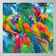 Colourful Parrot Birds Tropical Floral palms trees Poster