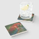 The coasters are gorgeous, a quality feel and heavy weight. They look like a precious archeological find. A rustic stone juxtaposed with a modern floral black and white print. I like the way the print goes slightly imperfect on the cut stone edges giving them a kind-of natural beauty.