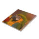 This tile features a beautiful Macaw parrot with a soft warm coloured background
