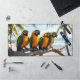 Add some colour to your desk with this colourful macaw parrots desk mat! This quality desk mat is 31.5" L x 15.5" H. It features four colourful macaw parrots in a tree by the ocean beach with palm trees. Perfect for that nature lover.