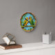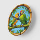 Colourful Parrots Perched on a Bamboo Frame Round Clock