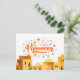 The design elements are thoughtfully placed against a clean white background, giving the vivid colours and playful illustrations space to stand out. This postcard is a charming way to share the spirit of Passover, filled with vibrant illustrations that reflect both the historical and celebratory aspects of the holiday.