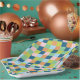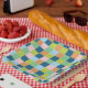 This textured chequerboard square pattern in a colour palette of light pink, soft orange, spring green, mint, sky blue and navy make these paper plates a fun addition to your party decor and table scape. Great for a gender neutral baby shower, kid birthday party, graduation celebration and more, this patten brings a sense of geometric whimsy to any event.