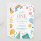 Celebrate your baby girl’s first birthday with this colourful pastel doodle invitation, featuring playful balloons, rainbow, and fun party icons. A bright and modern design perfect for a joyful milestone. Easily personalise all text online!