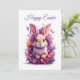 Colourful Pastel Easter Bunny & Watercolor Florals Holiday Card