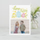 Happy Easter! Send Easter greetings to family and friends with this fun photo Easter flat card. It features modern calligraphy with colourful easter eggs and flowers. Personalise by adding a photo, names and message.