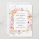 This wedding invitation features a beautiful floral frame made of soft pastel flowers in pink, orange, blue, yellow, and white. It's the perfect way to invite your guests to your special day with a touch of elegance and charm. The colourful flowers add a pop of colour while still maintaining a classic and timeless aesthetic. On the reverse side is a QR code, providing easy access to your wedding website or to RSVP online.