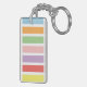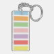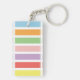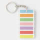 Geometric linear, rectangle, striped pattern of rainbow pastel hues of blue, orange, green, pink, purple, red and yellow.