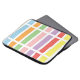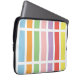 Geometric linear, rectangle, striped pattern of rainbow pastel hues of blue, orange, green, pink, purple, red and yellow.