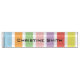 Geometric linear, rectangle, striped pattern of rainbow pastel hues of blue, orange, green, pink, purple, red and yellow.
