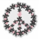 Retro daisy flowers in pink and black colour, gathered in a whimsical hippie peace sign floral wreath. Retro daisies peace sign design.