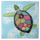 Colourful Patchwork Pattern Monogram Sea Turtle Ceramic Tile
