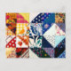 A colourful patchwork quilt postcard.