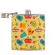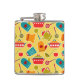 The flask itself is fine. It’s a cheap flask, obviously bought in bulk, however am prepared to overlook that. Given that it is a personalized item, I would have liked to have seen gift boxing instead of the generic packaging. Terrible printing, and/or quality. It’s a cheap, tacky vinyl. It is not cut straight and is also applied in a way that it is overhanging the bottom, causing the glue to catch on items and it will eventually roll and tear, damaging the wrap.
