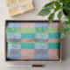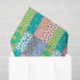 This tissue paper features a patchwork of various patterns including paisley, polka dots and flowers in purple, yellow, teal, blue, white, pink, and green colours.