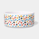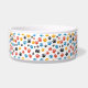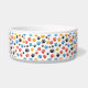 Discover our playful and vibrant dog bowl featuring a lively pattern of multicolored paw prints in red, blue, yellow, and black scattered across a white background. Perfect for pet lovers, this fun design adds a touch of energy and personality to your furry friend's mealtime. Durable and stylish, it's an ideal choice for pet owners seeking a colourful and lively feeding accessory.