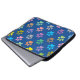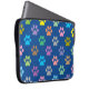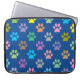 Colourful puppy paw prints pattern on blue background laptop sleeve