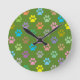 Colourful paw prints pattern round clock
