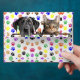 Illustrated colourful pawprints with a surprise dog and cat pic on the back of the envelope