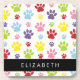 Colourful Paws, Paw Pattern, Dog Paws, Your Name Coaster
