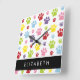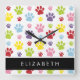 Colourful Paws, Paw Pattern, Dog Paws, Your Name Square Wall Clock